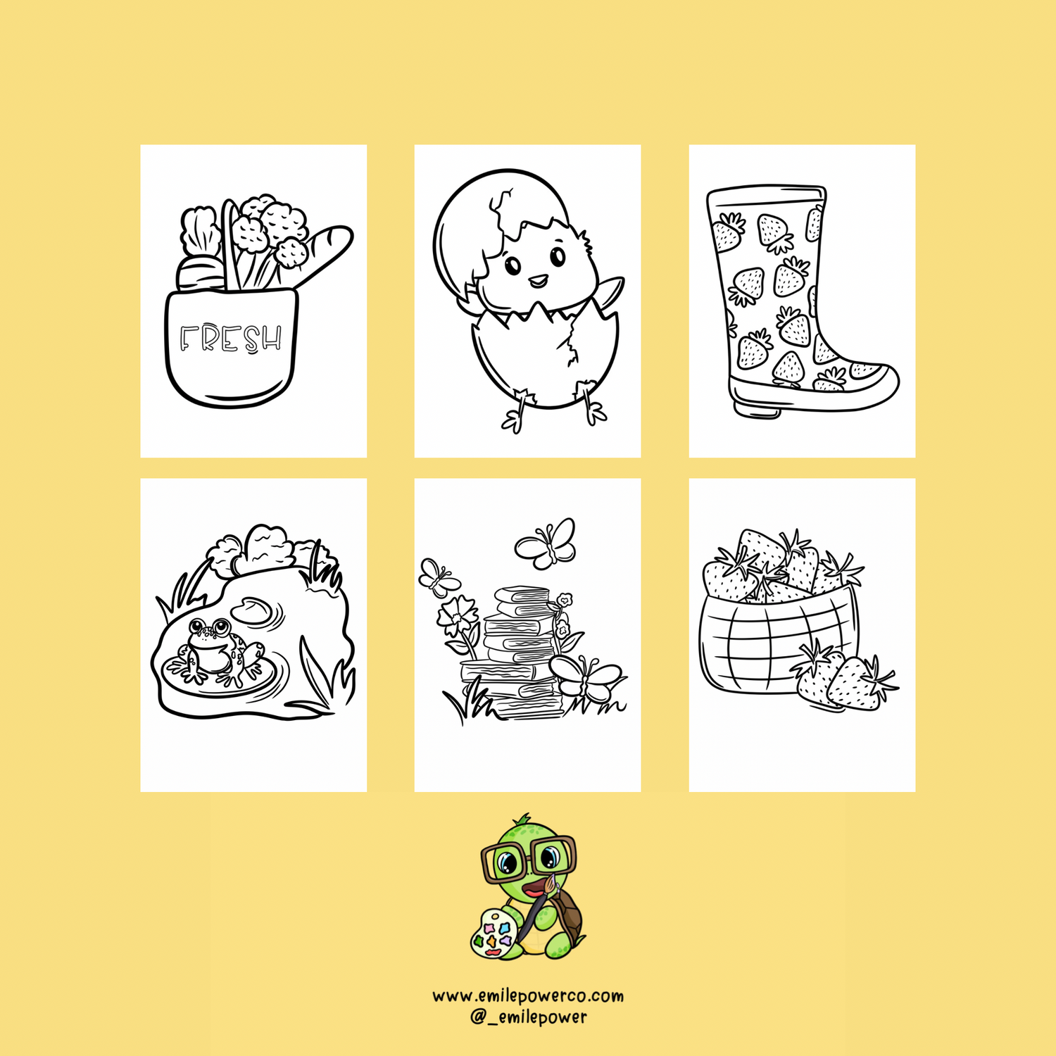 This easy to color, coloring book has bold lines with simple designs for easy coloring designed for both kids and adults. It features over 39 unique illustrations including: mushrooms, flowers, bunnies, bees and more spring themes.